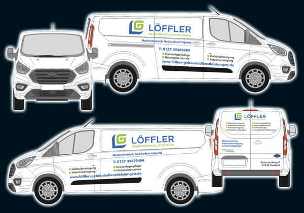 Auf dem neuen Firmenfahrzeug wird das Corporate Design jetzt natürlich auch umgesetzt.