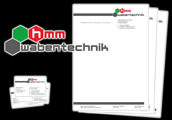 Logo und Geschäftspapier für die HMM Wabentechnik GmbH
